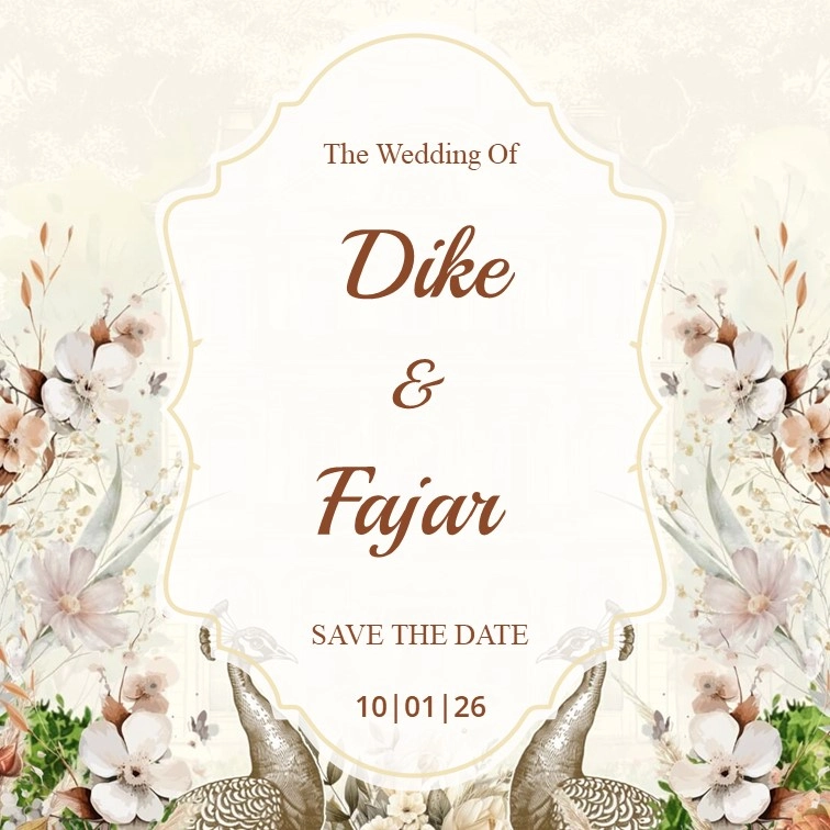 The Wedding of Siti & Toni Kepada Yth: Buka Undangan The Wedding of Siti & Toni 28.12.2025 “Dan di antara tanda-tanda (kebesaran)-Nya ialah Dia menciptakan pasangan-pasangan untukmu dari jenismu sendiri, agar kamu cenderung dan merasa tenteram kepadanya, dan Dia menjadikan di antaramu rasa kasih dan sayang. Sungguh, pada yang demikian itu benar-benar terdapat tanda-tanda (kebesaran […]