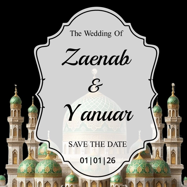 The Wedding of Zaenab & Yanuar Kepada Yth: Buka Undangan Zaenab & Yanuar 01. 01. 2026 Z & Y “Dan di antara tanda-tanda (kebesaran)-Nya ialah Dia menciptakan pasangan-pasangan untukmu dari jenismu sendiri, agar kamu cenderung dan merasa tenteram kepadanya, dan Dia menjadikan di antaramu rasa kasih dan sayang. Sungguh, pada yang demikian itu benar-benar terdapat […]