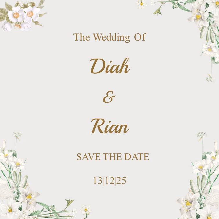 Save The Date Diah & Rian kepada Buka Undangan Diah & Rian Simpan di Kalender Assalamu’alaikum wr. wb. Segala Puji Bagi Allah SWT yang telah menjadikan hambanya hidup berpasang-pasangan. Dengan memohon Ridho, Rahmat, dan Berkah Allah SWT, kami bermaksud untuk mengundang Saudara/i dalam acara pernikahan yang kami selenggarakan. Count Down Hari Jam Menit Detik MENIKAH […]