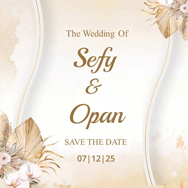Save The Date S O kepada Buka Undangan The Wedding of Sefy & Opan hari jam menit detik Simpan di Kalender Assalamu’alaikum Warahmatullahi Wabarakatuh MENIKAH Sefy Nurhidayah Putri Pertama Bapak Arman S & Ibu Suharti & Mohamad Shofanudin As’suyuti Putra Kedua Bapak Suprapto S.Pd & Ibu Titi Kusniati S.Pd “Dan di antara tanda-tanda kekuasaan-Nya ialah […]