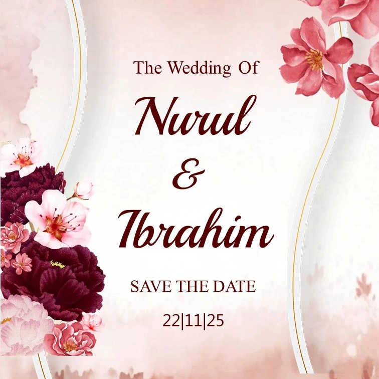 Save The Date N I kepada Buka Undangan The Wedding of Nurul & Ibrahim hari jam menit detik Simpan di Kalender Assalamu’alaikum Warahmatullahi Wabarakatuh MENIKAH Nurul Safitri, S.S Putri Pertama Bapak Riyadi & Ibu Warsuti & Nurillah Ibrahim Kurniawan, A. Md. Pas. Putra Kedua Bapak Bambang Sutrisno, S.H. & Ibu Pudjiwati Wedyatmini “Dan di antara […]