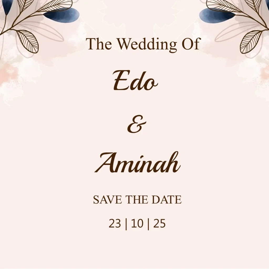 The Wedding Of Edo & Aminah Kpd Yth. Bpk/Ibu/Saudara/i Tamu Undangan Buka Undangan The Wedding of Edo & Aminah 00Hari 00Jam 00Menit 00Detik Kamis, 23 Oktober 2025 Save The Date Di antara tanda-tanda (kebesaran)-Nya ialah bahwa Dia menciptakan pasangan-pasangan untukmu dari (jenis) dirimu sendiri agar kamu merasa tenteram kepadanya. Dia menjadikan di antaramu […]