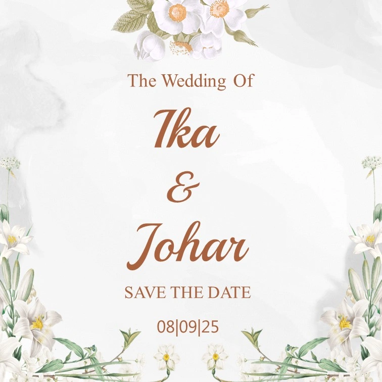 Save The Date Ika & Johar kepada Buka Undangan Ika & Johar Simpan di Kalender Assalamu’alaikum wr. wb. Segala Puji Bagi Allah SWT yang telah menjadikan hambanya hidup berpasang-pasangan. Dengan memohon Ridho, Rahmat, dan Berkah Allah SWT, kami bermaksud untuk mengundang Saudara/i dalam acara pernikahan yang kami selenggarakan. Count Down Hari Jam Menit Detik MENIKAH […]