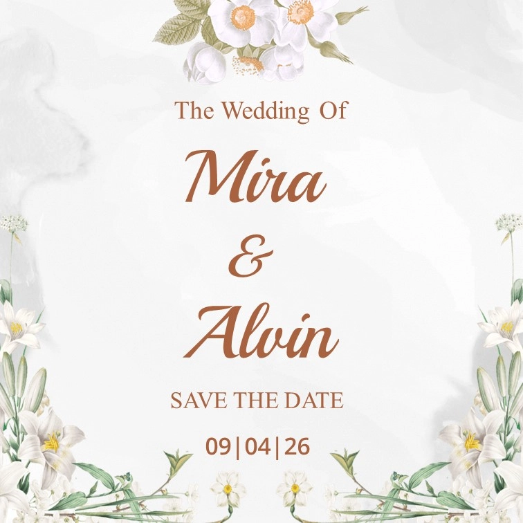 Save The Date Mira & Alvin kepada Buka Undangan Mira & Alvin Simpan di Kalender Assalamu’alaikum wr. wb. Segala Puji Bagi Allah SWT yang telah menjadikan hambanya hidup berpasang-pasangan. Dengan memohon Ridho, Rahmat, dan Berkah Allah SWT, kami bermaksud untuk mengundang Saudara/i dalam acara pernikahan yang kami selenggarakan. Count Down Hari Jam Menit Detik MENIKAH […]
