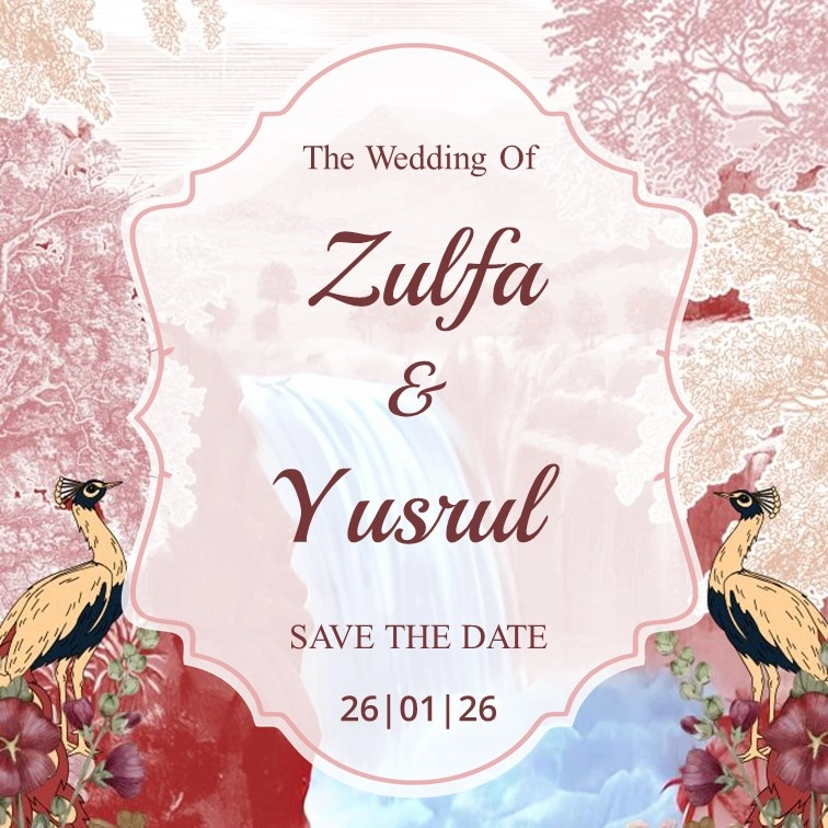 The Wedding of Zulfa & Yusrul Kepada Yth: Buka Undangan The Wedding of Zulfa & Yusrul 26.01.2026 “Dan di antara tanda-tanda (kebesaran)-Nya ialah Dia menciptakan pasangan-pasangan untukmu dari jenismu sendiri, agar kamu cenderung dan merasa tenteram kepadanya, dan Dia menjadikan di antaramu rasa kasih dan sayang. Sungguh, pada yang demikian itu benar-benar terdapat tanda-tanda (kebesaran […]